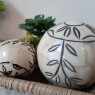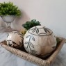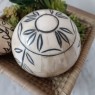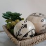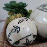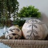 Peça decorativa em osso, com formato de bola e desenhos de folhas/floral na cor preta pintada a mão. Bonito e simples esse objeto decorativo vai complementar a decoração dos móveis como aparadores, estantes, mesas de centro ou laterais e criado mudos de forma delicada e charmosa. Atinge vários estilos, pois trás a durabilidade do osso, pintada de forma artesanal e criativa transformando em um design moderno e versátil.