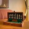 Aprimore o visual da sua casa ou escritório com este deslumbrante conjunto de xadrez decorativo em metal e madeira. Cada peça foi cuidadosamente elaborada para adicionar um toque de elegância e sofisticação ao seu espaço, além de oferecer a oportunidade de exibir a sua paixão pelo jogo de xadrez de uma maneira única.