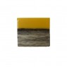 Peça em acrílico na cor amarelo com acabamento em madeira, em formato quadrado, no tamanho de 5X5X8 cm.