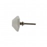 Peça em mármore natural no formato de hexágono (seis lados), com acabamento em metal, no tamanho D4xP8 cm.