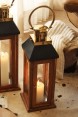 Lanterna de Madeira com Alça em Metal Dourado 18X53 cm
