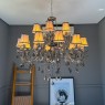 LUSTRE EM CRISTAL GRAFITE COM 18 BRACOS E CUPULA EM TECIDO