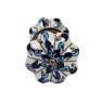 FichaTecnica Peça em cerâmica com acabamento em metal, decorada artesanalmente em azul, no tamanho C20xD7 cm.
