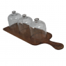 PRATO PARA QUEIJO TRIPLO EM MADEIRA COM CUPULAS 56 X18 X15CM
